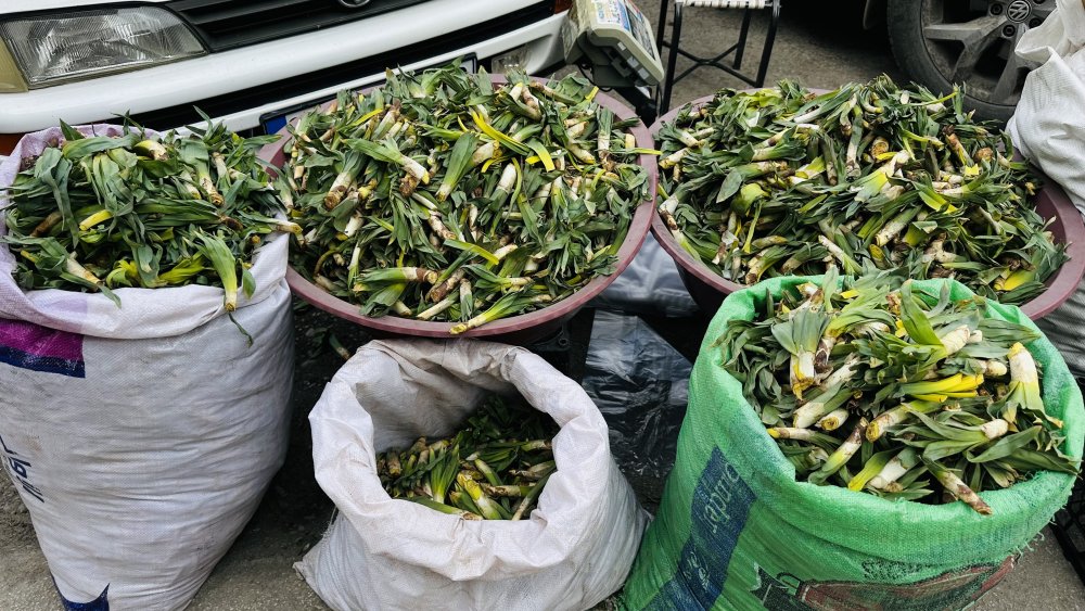 Şemdinli ilçesinin yüksek dağlarından toplanan çiriş otu, Yüksekova'daki tezgahlarda yerini aldı ve kilosu 50 TL'den satışa sunuldu.