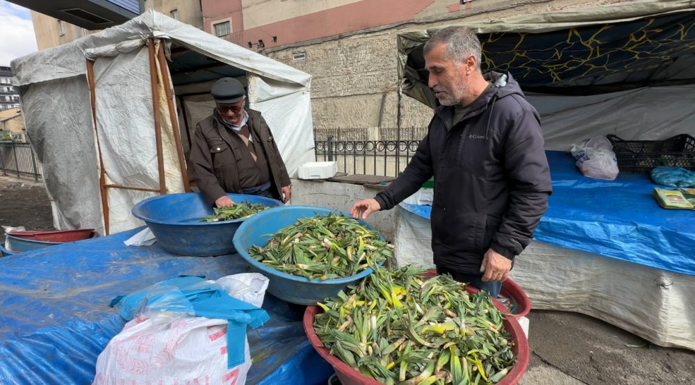 İlçenin Cengiz Topel Caddesi üzerinde kurulan tezgahlarda 40-50 TL arasında satılan çiriş otu, Şemdinli'nin yüksek dağlarından toplanarak Yüksekova'ya getiriliyor.