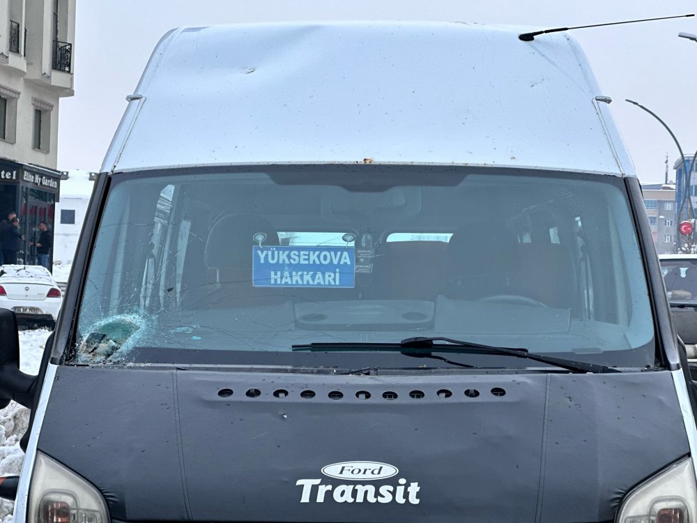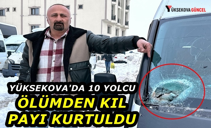 Yüksekova ilçesinde seyir halindeki minibüse kaya isabet etmesi sonucu 10 yolcu ölümden kıl payı kurtuldu.