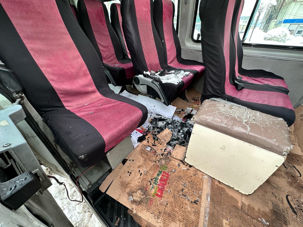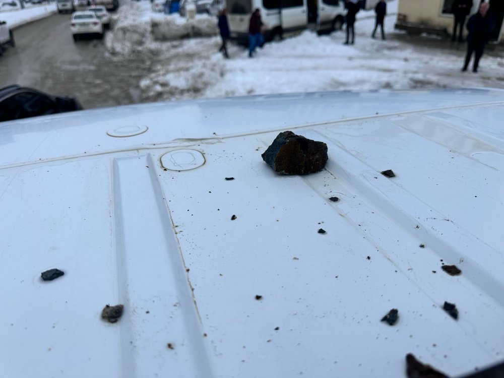 Kaya parçaları nedeniyle aracın ön ve tavanda bulunan camı kırılırken, içerisindeki 10 yolcu ise adeta ölümden döndü.