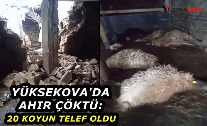 Yüksekova ilçesinde karın ağırlığına dayanamayan ahır çökerken, 20 koyun ise altında kalarak telef oldu.