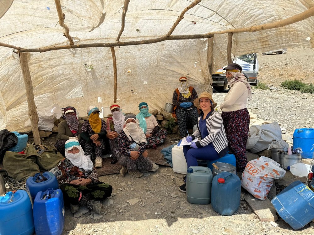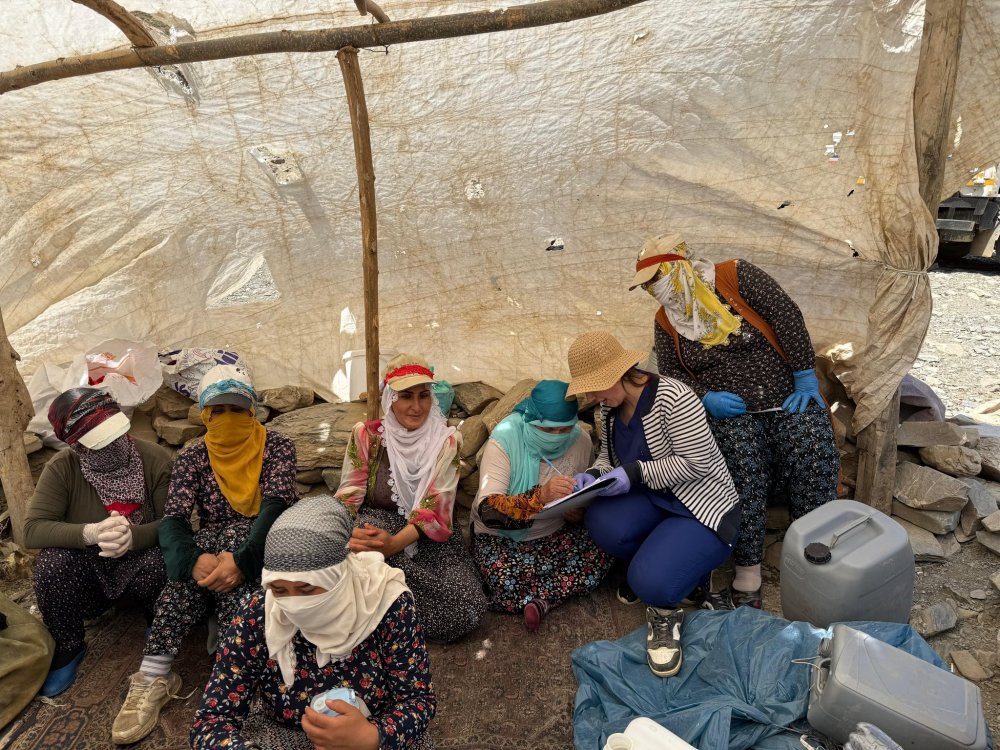 Bu çerçevede, ilçenin farklı noktalarında hayvanlarını sağan berivanlarla bir araya gelen ekipler, süt sağımından depolamaya kadar olan süreçte hijyenin önemini anlattı.