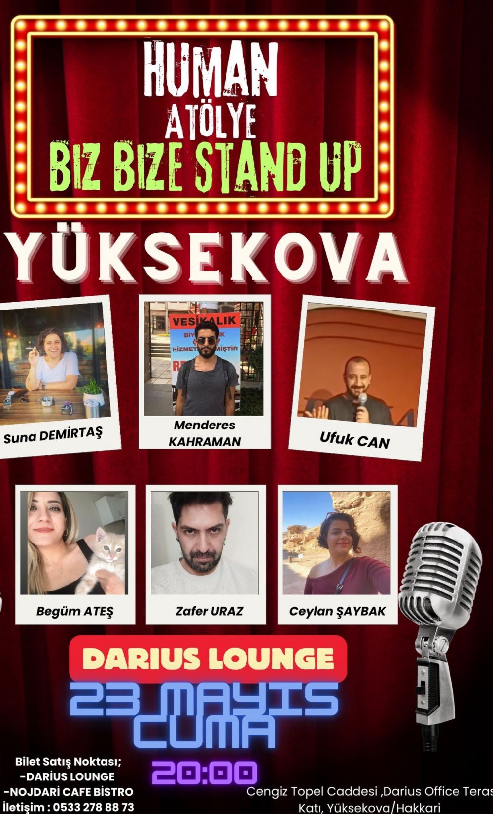 Hakkarili tiyatrocu ve komedyen Menderes Kahraman’ın kurduğu “Human Atölye”, 23 Mayıs Cuma günü Yüksekova'da "Biz Bize Stand Up" adlı özel bir gösteriyle sanatseverlerin karşısına çıkacak.