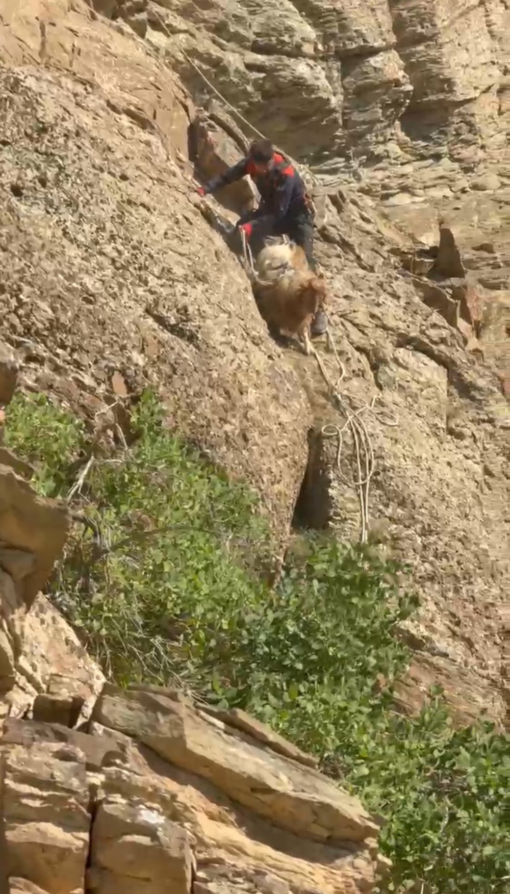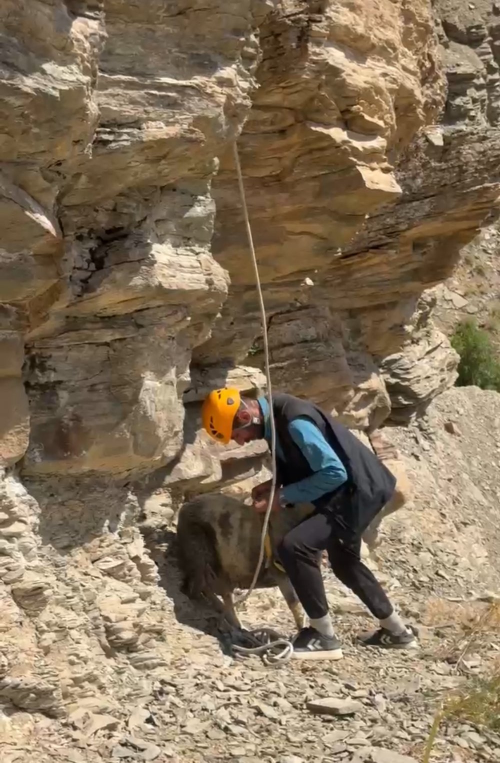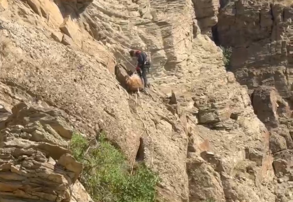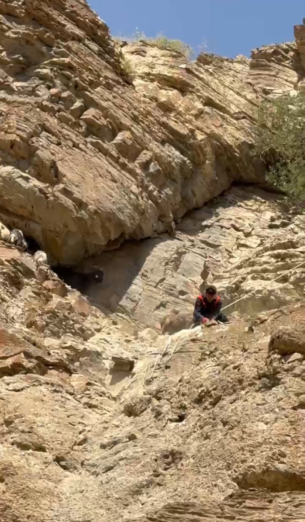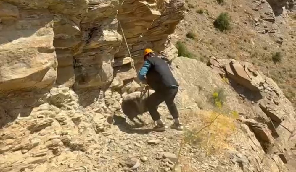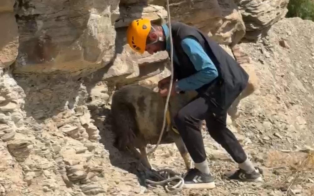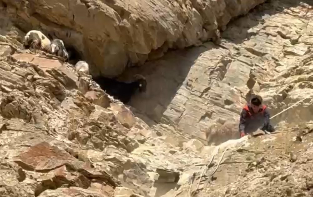 Yüksekova ilçesinde, dağın tepesinde iki gündür mahsur kalan yedi koyun, AFAD, Jandarma ve İtfaiye ekiplerinin beş saat süren ortak çalışmasıyla kurtarıldı.