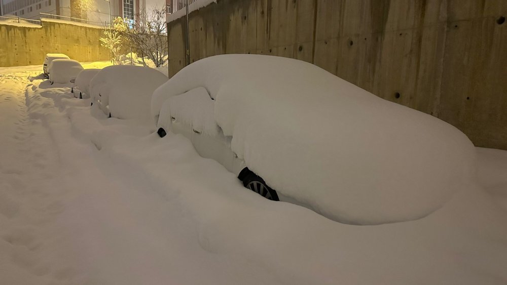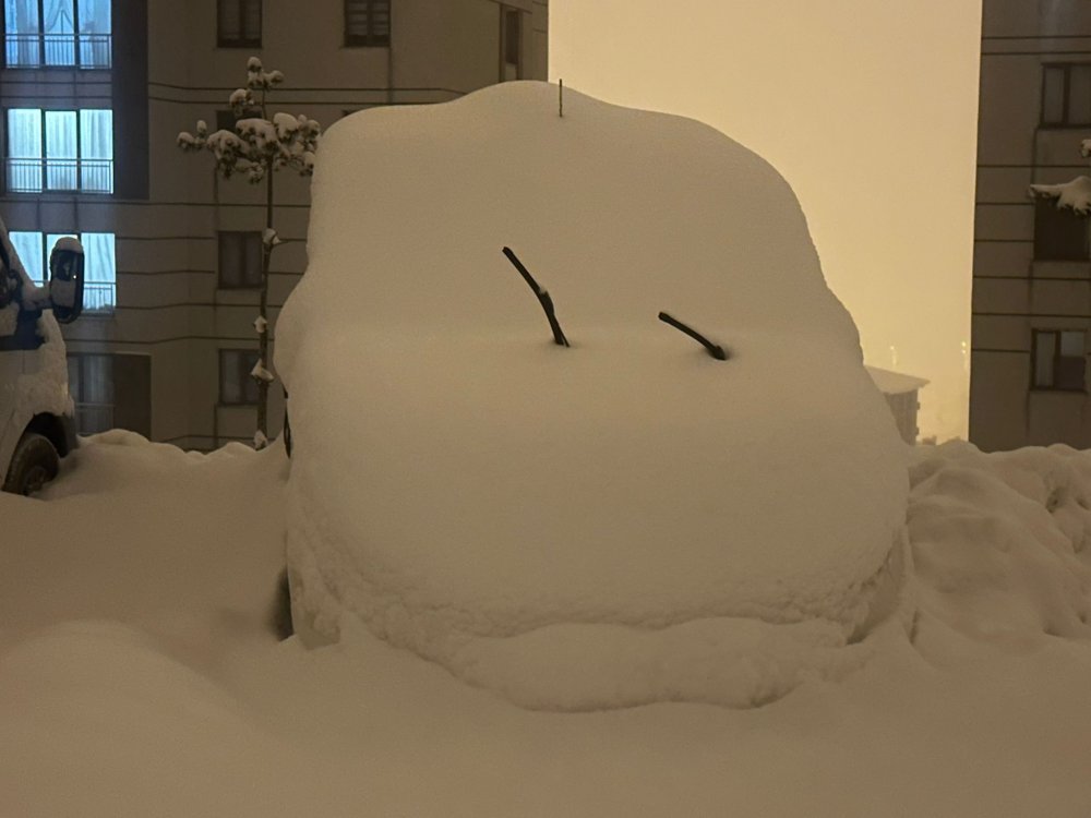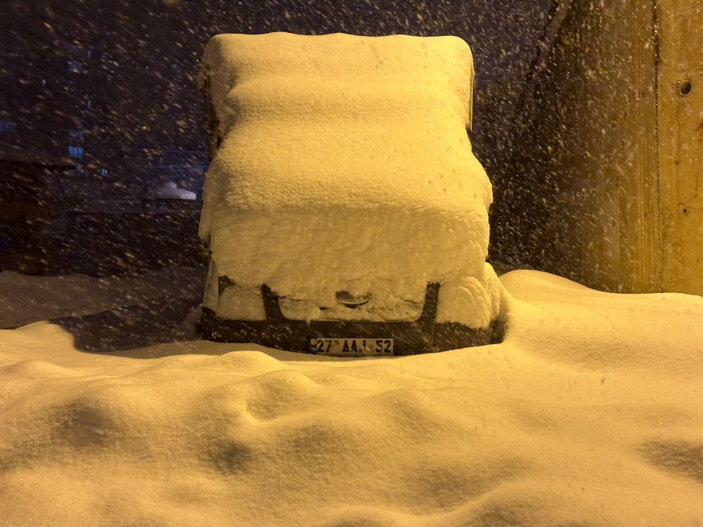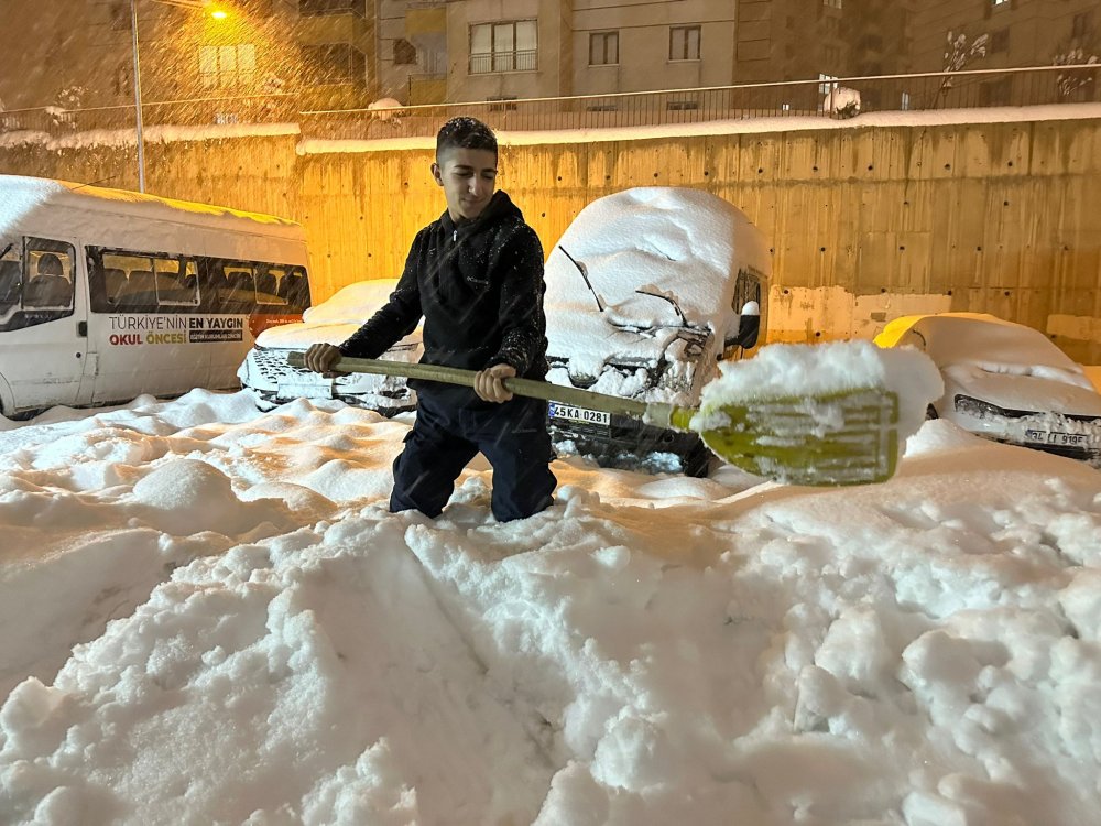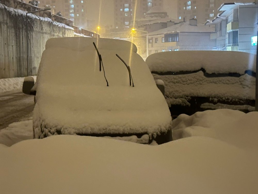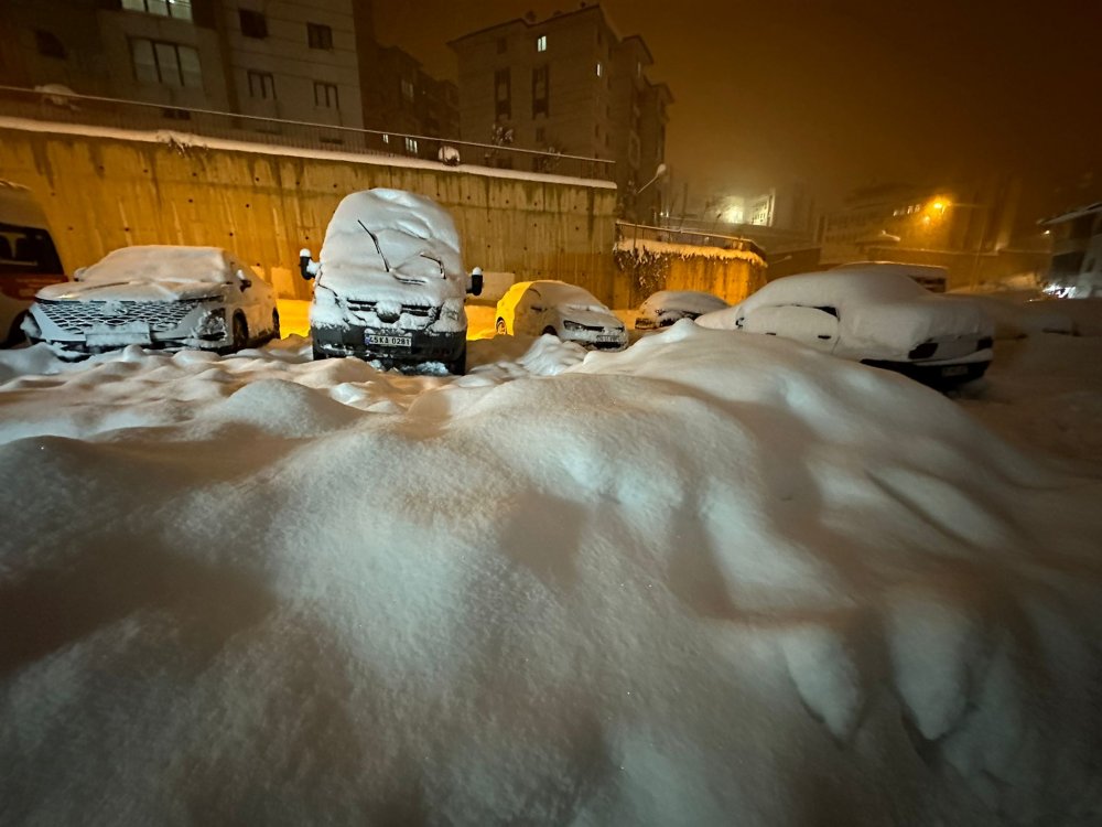 Araçlar kar içinde adeta kayboldu. Kar yağışına en çok sevin gençler ise kendilerini dışarıya atarak kar topu oynadı ve kardan adam yaptı.