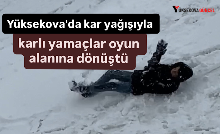 Yüksekova ilçesinde etkili olan kar yağışı ve hafta sonu tatilini fırsat bilen çocuklar, karlı yamaçları oyun alanına çevirdi.