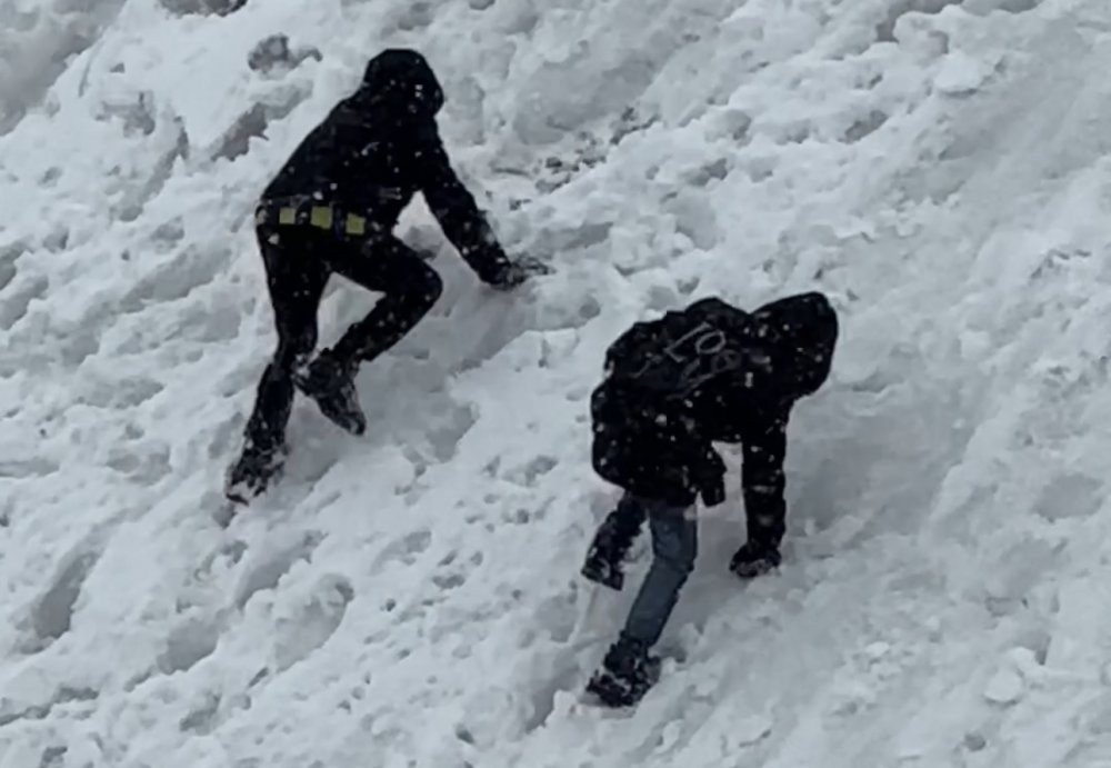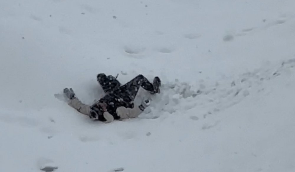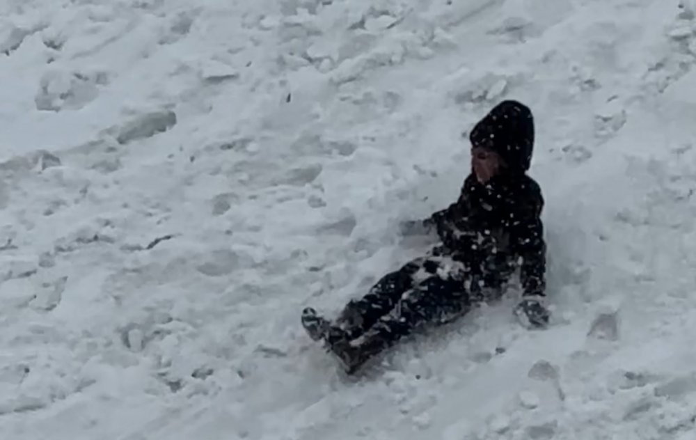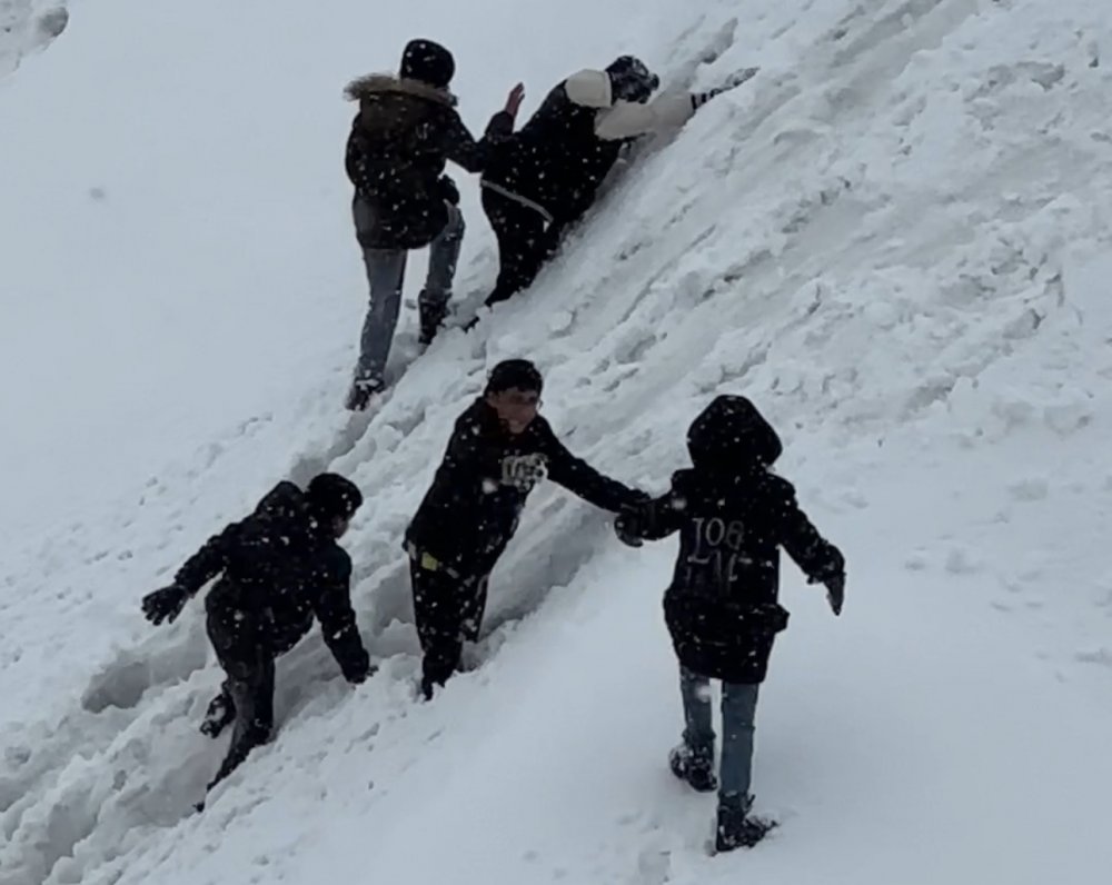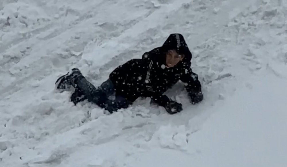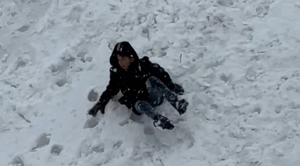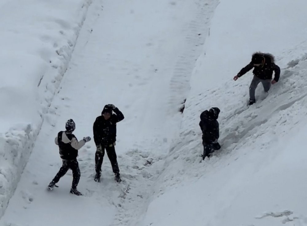 Bazı çocukların ise herhangi bir araç kullanmadan karın üzerinde yuvarlanarak aşağı indiği görüldü.