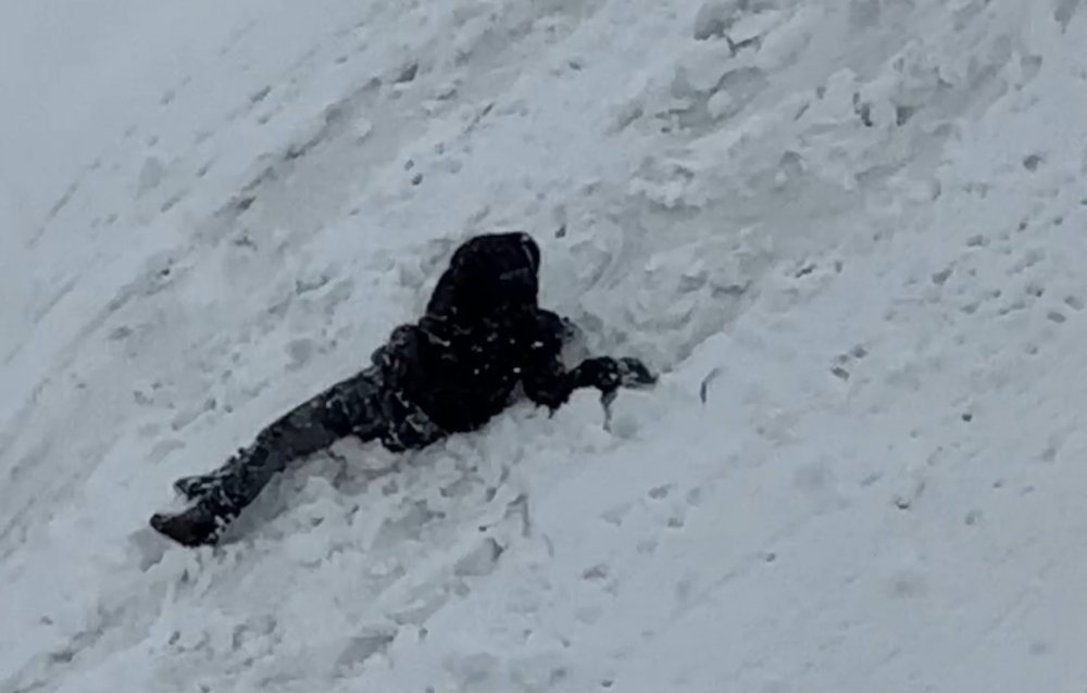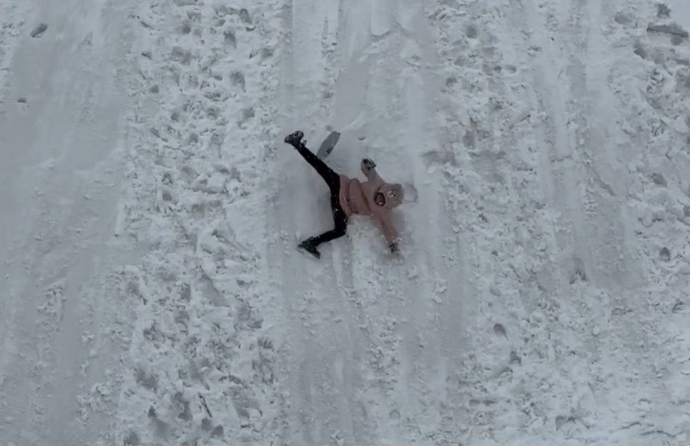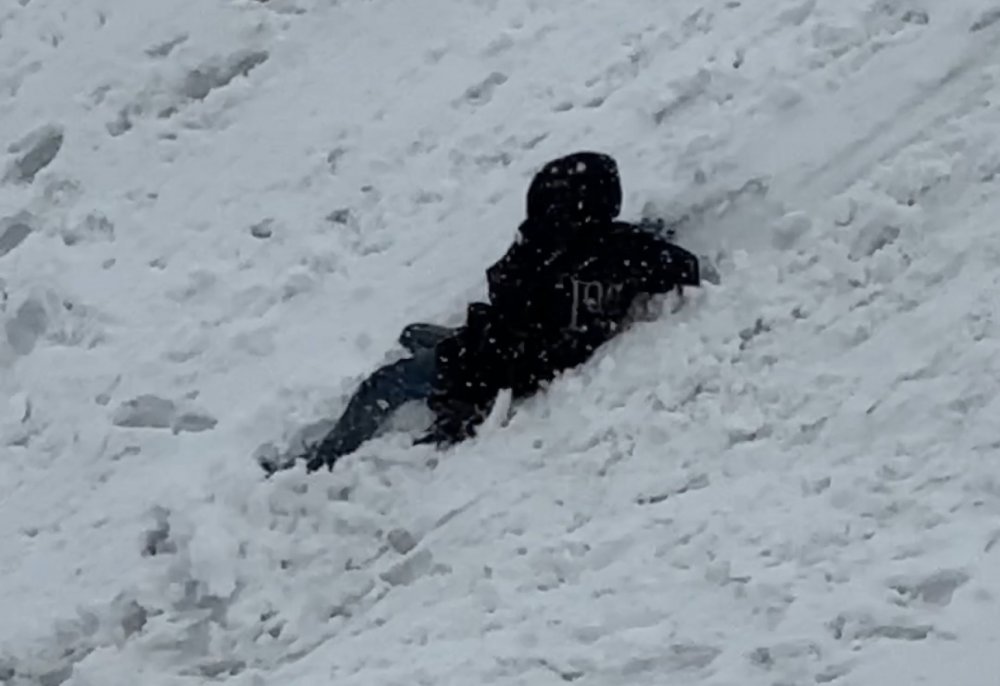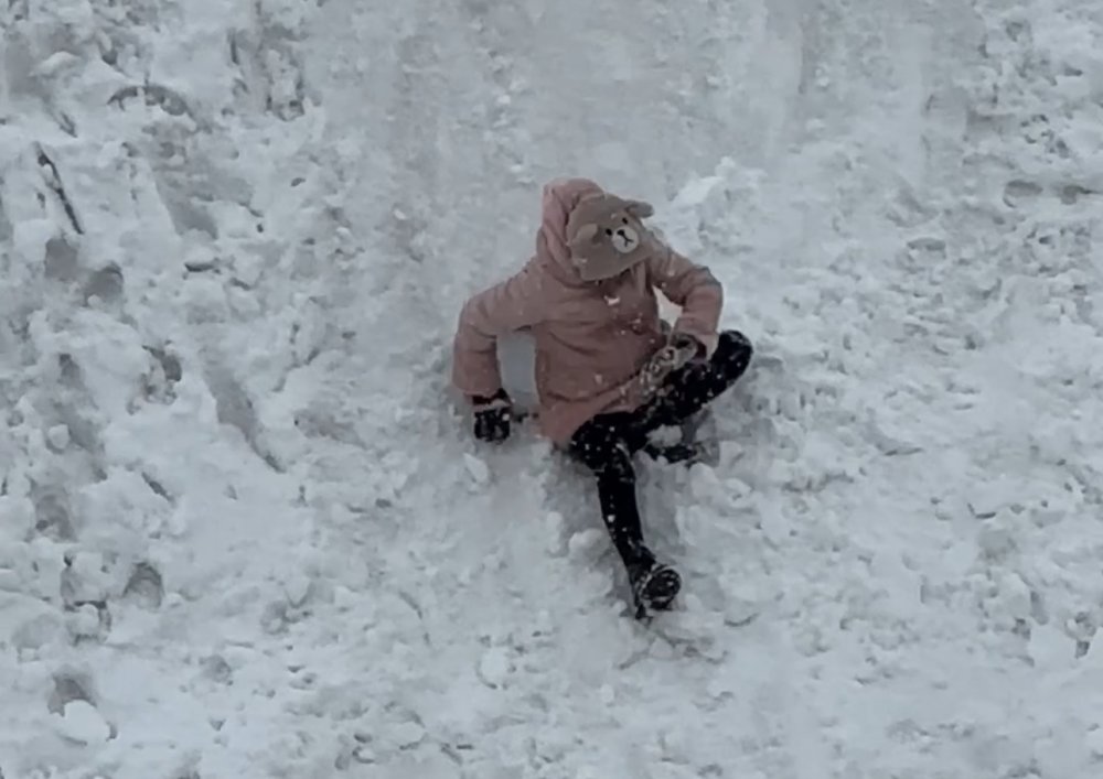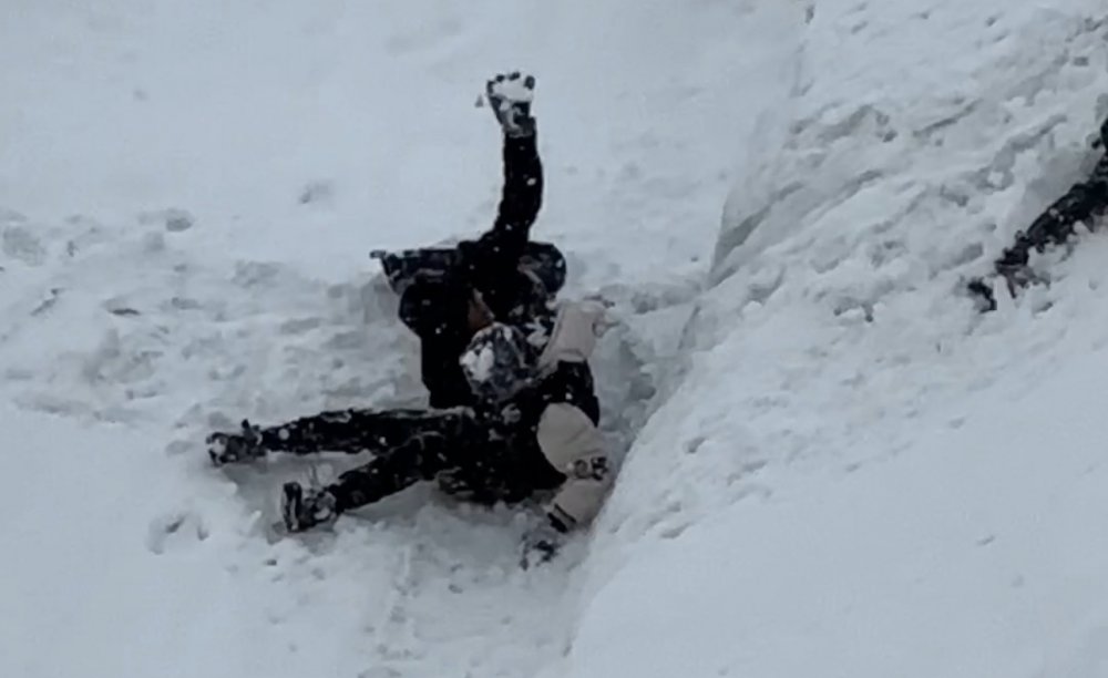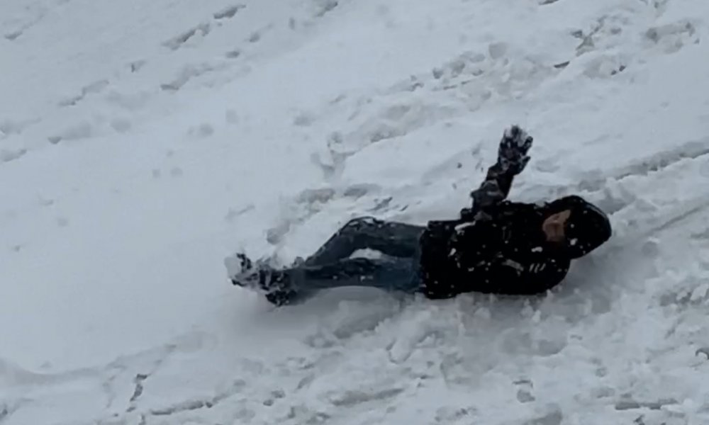 Bazı çocukların ise herhangi bir araç kullanmadan karın üzerinde yuvarlanarak aşağı indiği görüldü.