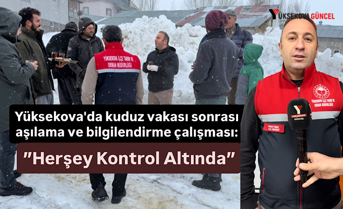 İlçenin Cilo Dağı eteklerinde bulunan Kadıköy köyünde bir eşekte kuduz vakası tespit edilmesi üzerine, Yüksekova İlçe Tarım ve Orman Müdürü Murat İnan koordinesindeki veteriner hekimler bölgeye sevk edildi. Ekipler, vakaya hızlı müdahalede bulunarak bölgedeki hayvanların korunmasına yönelik geniş kapsamlı çalışma başlattı.