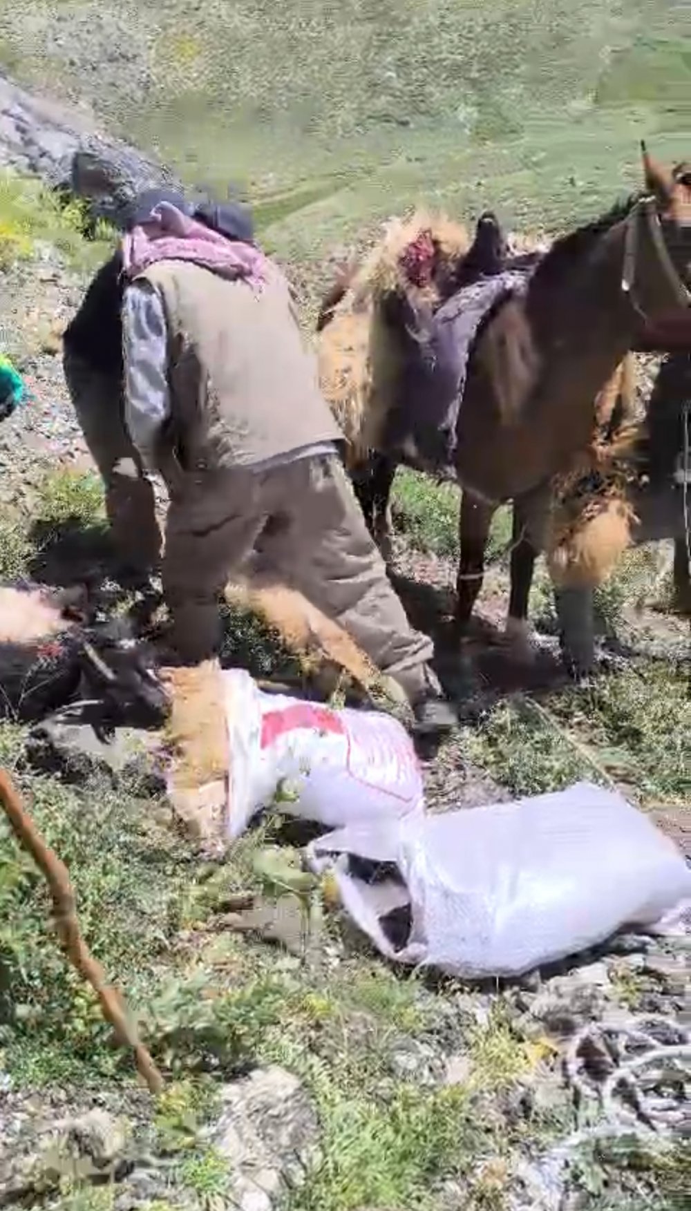 Köy sakinleri daha sonra kestikleri koyunları at sırtında köye götürdüler.