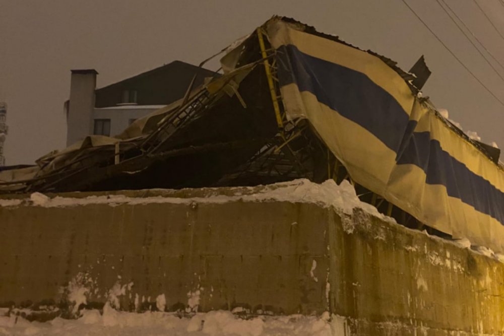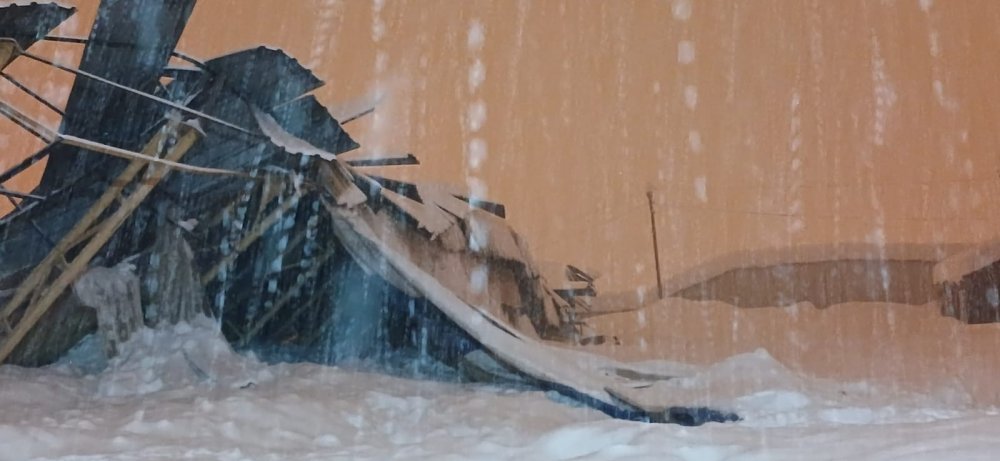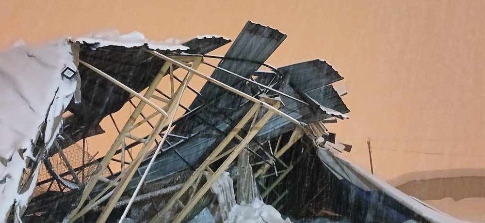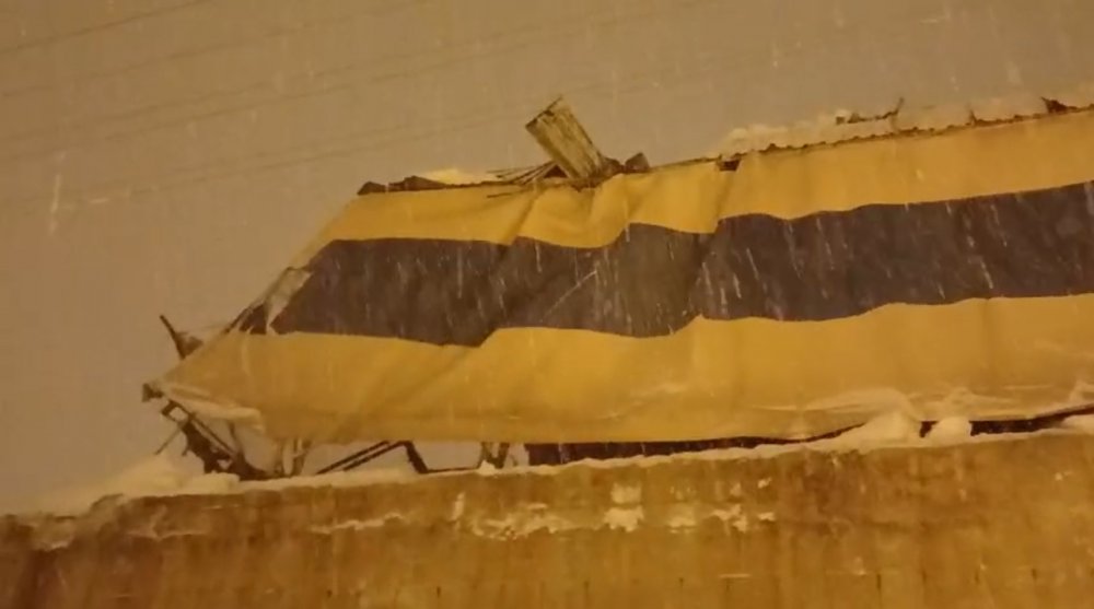 Yüksekova'da yoğun kar nedeniyle halı sahanın çatısı çöktü