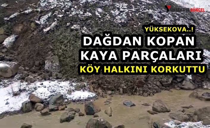 Yüksekova ilçesinde yağışlarla beraber dağdan kopan kaya parçaları vatandaşları korkuttu.