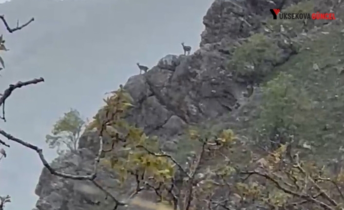 Yüksekova ilçesinin Dağlıca (Oremar) köyünde yağışlı hava koşullarına rağmen kayalık alanlarda gezen dağ keçileri vatandaşlar tarafından görüntülendi.