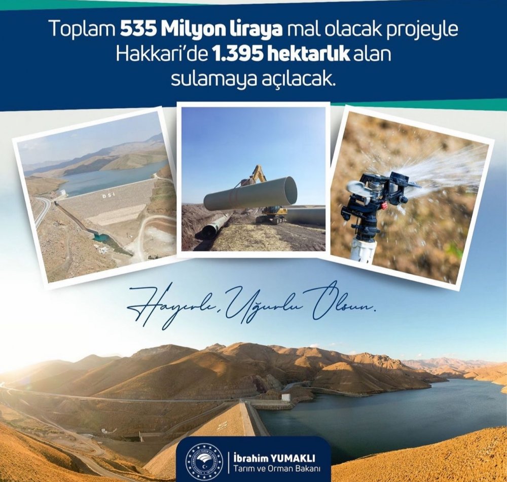 Hakkari’nin Yüksekova ilçesinde 14 bin dekarlık tarım arazisini suya kavuşturacak Dilimli Barajı Sulaması 1. kısım yapım işinin sözleşmesi imzalandı. Su tutan Dilimli Barajı’ndan alınacak suyu Yüksekova ilçesindeki verimli topraklarla buluşturacak sistemin 2028 yılının ilk çeyreğinde hizmete girmesi planlanıyor.