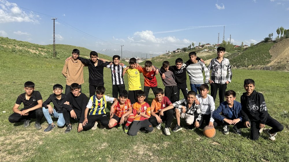 Yüksekova ilçesindeki evlerinin yanında bulunan boş arazide top oynayan gençler, mahallelerine halı saha yapılmasını istiyor.