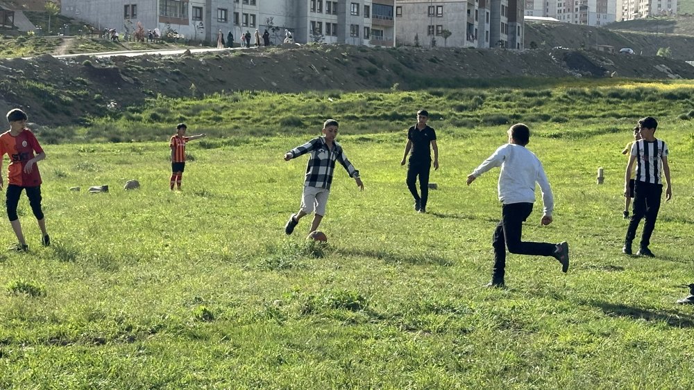 Boş araziyi saha olarak kullandıklarını belirten Kadir Altay isimli genç, “Mahallemize yakın halı saha olmadığı için bizde arkadaşlarla beraber evimize yakın boş arazide top oynuyoruz. Her mahalle gibi halı saha istiyoruz. Her şeye rağmen güzel gidiyor. Büyüklerimiz buraya geldiklerinde ‘eski günlerimizi hatırlatıyorsunuz bize’ diyorlar. İnşallah kısa sürede bizim mahalleye halı saha yapılır” dedi.