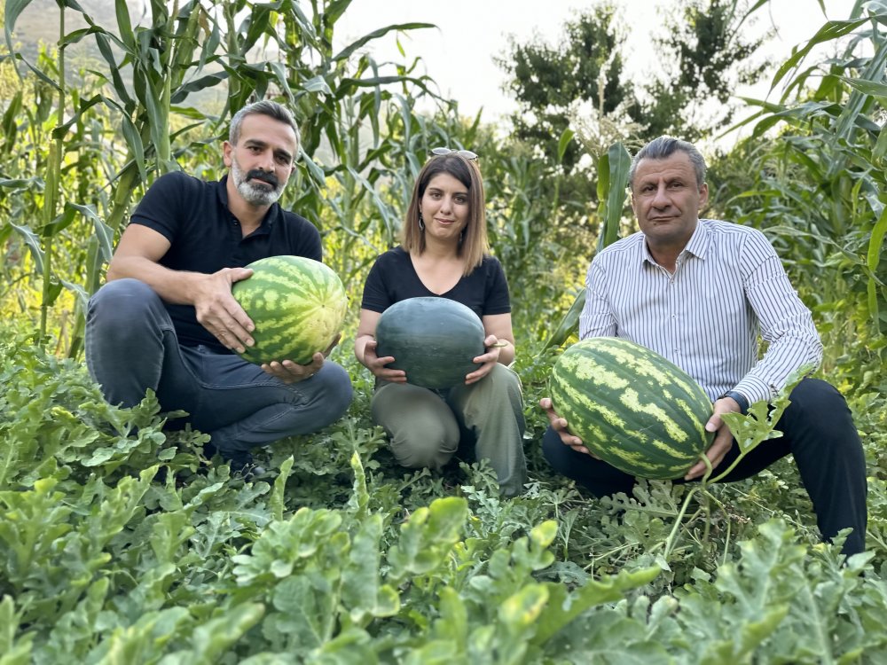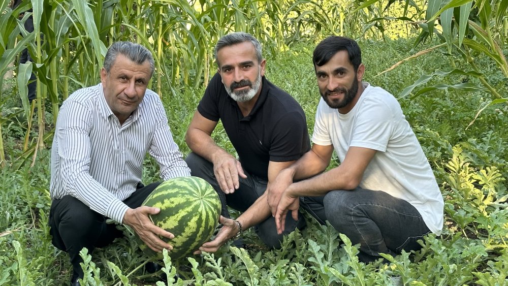 Yüksekova İlçe Tarım ve Orman Müdürlüğü’nden ilkbahar da aldığı karpuz fidelerini köyündeki bahçesine ekimini gerçekleştiren Çakmakçı’nın verdiğini emeğinin karşılığı ise karpuzlar 20 kiloyu buldu.