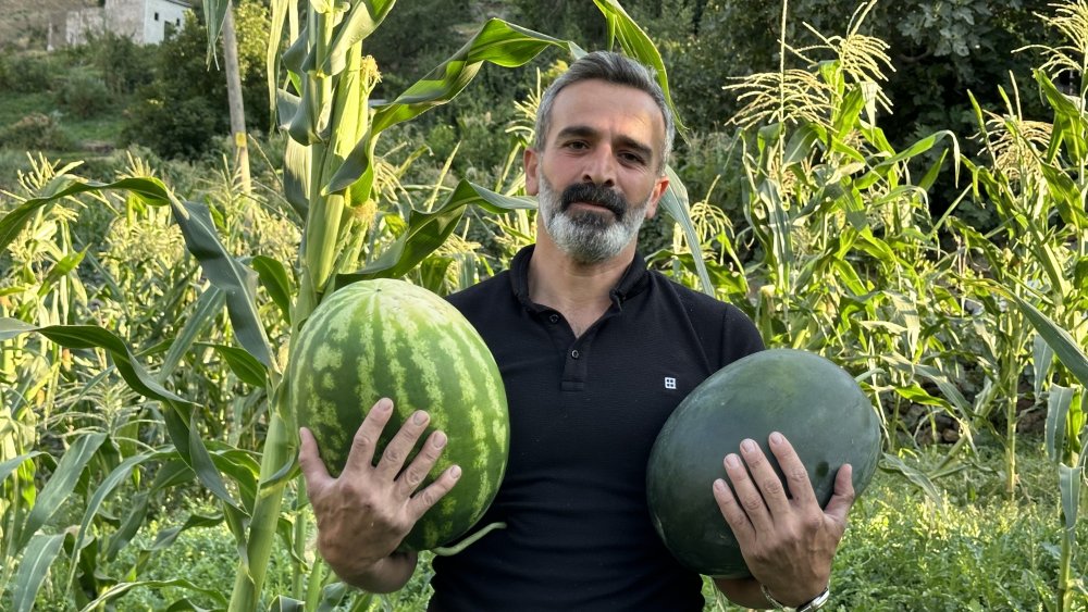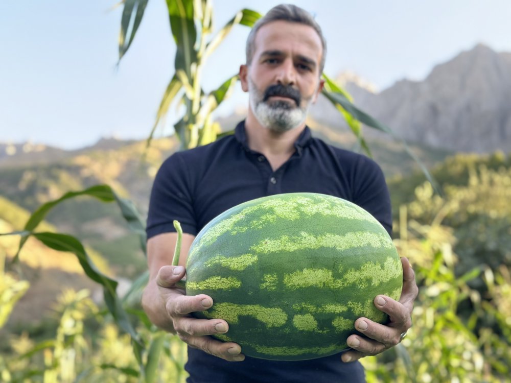 Yüksekova ilçesinin ikamet eden Cahit Çakmakçı isimli öğretmen, okulların tatil edilmesiyle köyünde çiftçilik yapıyor. Köyünde bu sene ekimini yaptığı karpuzların ağırlığı 20 kilograma kadar ulaştı.