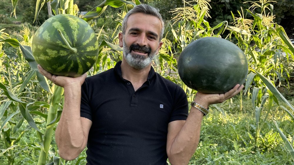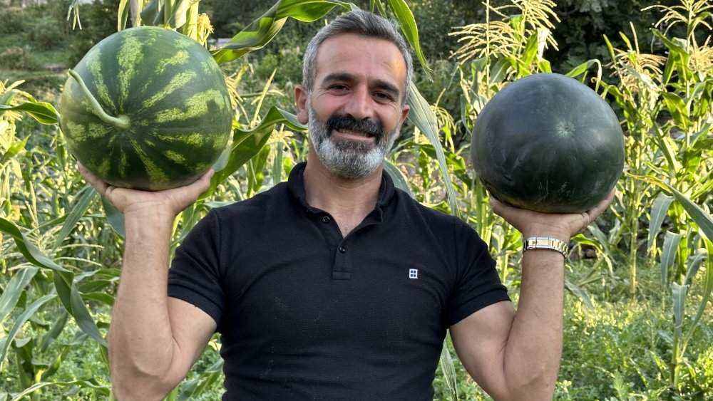 Yüksekova: Hem öğretmen hem de çiftçi, Yetiştirdiği karpuzlar 20 kiloya ulaştı
