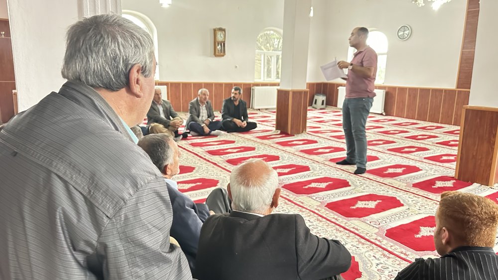 Köy camisinde çiftçilerle biraraya gelen İlçe Tarım ve Orman Müdürlüğü ekipleri, 2025-2027 yılları içerisinde Bitkisel Üretim Planlaması ile ilişkilendirilmiş yeni bitkisel üretim destekleme modeli, üretim planlaması ve çiftçi kayıt sisteminde yapılan değişikliklerle ilgili bilgilendirme çalışması yaptılar.