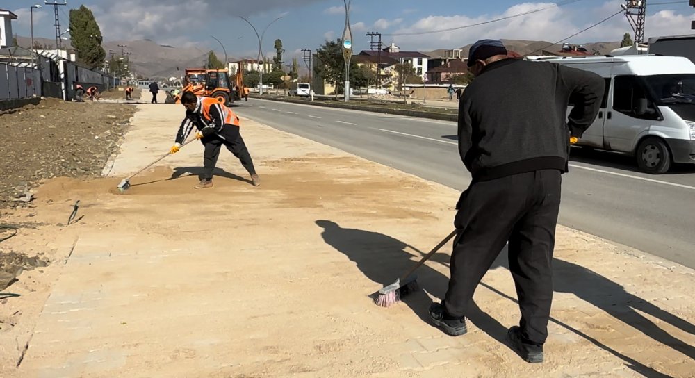 Karayolları ekipleri kaldırımlarda asfaltlama çalışması yaparken, yüklenici firma ise kaldırımları temizleyerek daha estetik bir görünüm kazandırmaya yönelik çalışmalar gerçekleştirdi.