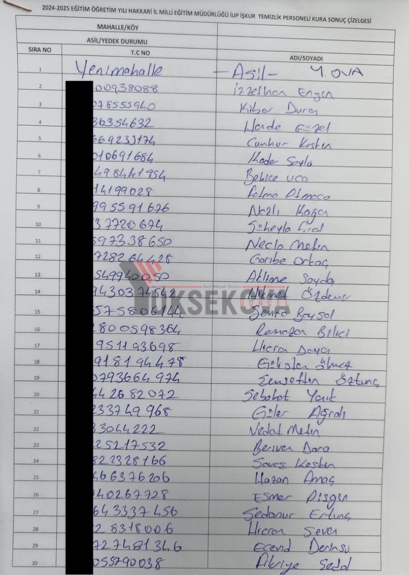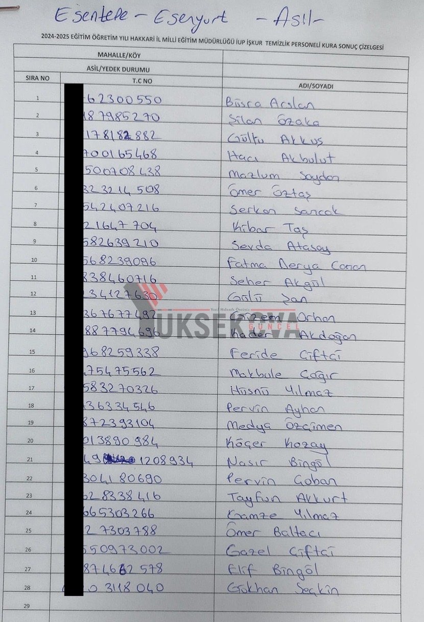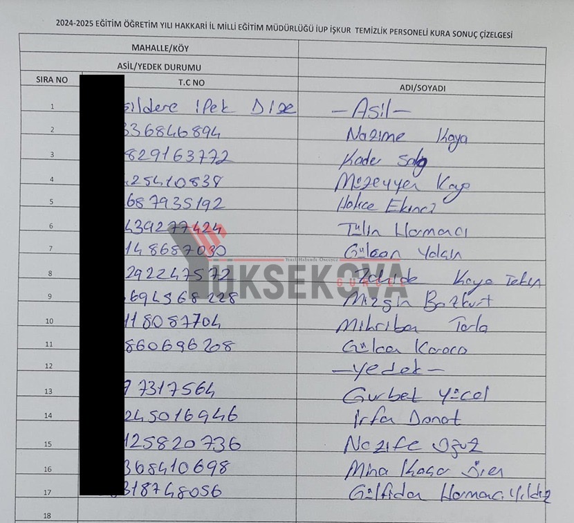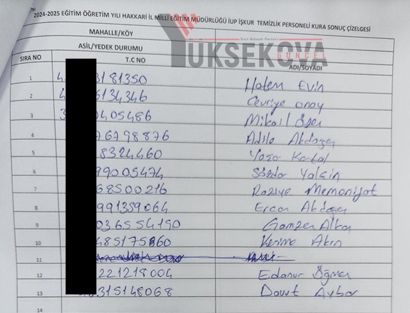Yüksekova İŞ-KUR listesi açıklandı! İşte kuradan çıkan isimler