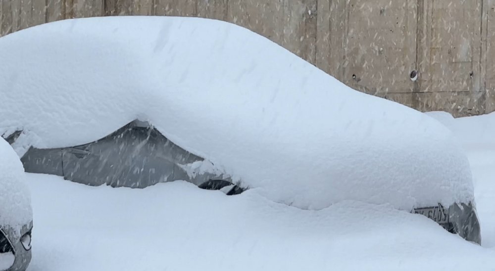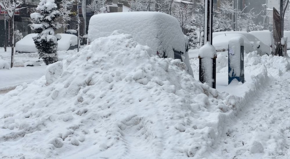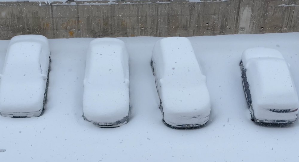 Kar kalınlığının 20 santimetreye kadar ulaştığı ilçede park halindeki araçlar ve tek katlı evler adeta kara gömüldü.