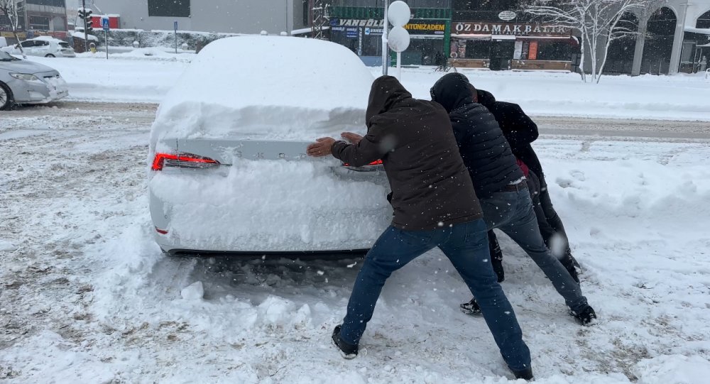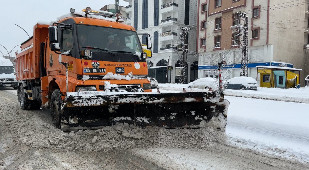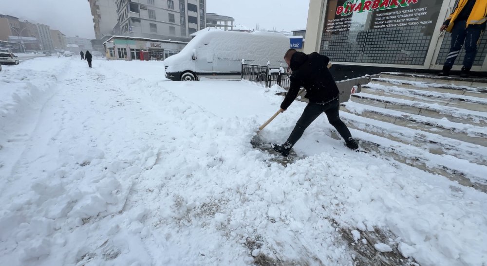 Özellikle Cengiz Topel ve İpekyolu caddeleri üzerinde seyir halinde olan sürücüler zor anlar yaşarken, esnaf ise iş yerinin önündeki karı temizledi.