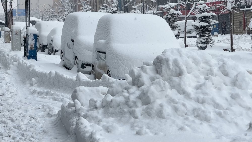 Yüksekova ilçesinde etkili olan yoğun kar yağış nedeniyle araçlar ve tek katlı evler kar altında kalırken okullar ise 1 gün tatil edildi.