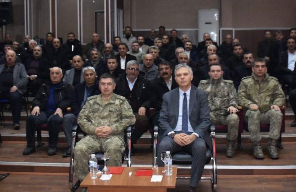 3’üncü Piyade Tümen Komutanlığı ev sahipliğinde gerçekleştirilen toplantıya, Yüksekova Kaymakamı Mustafa Akın, askeri yetkililer ve mahalle ile köy muhtarları katıldı.