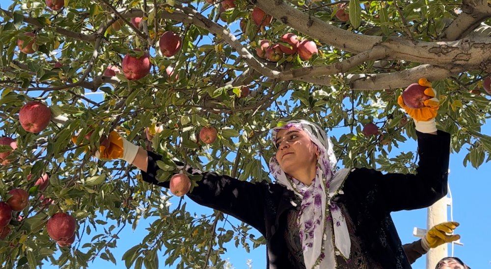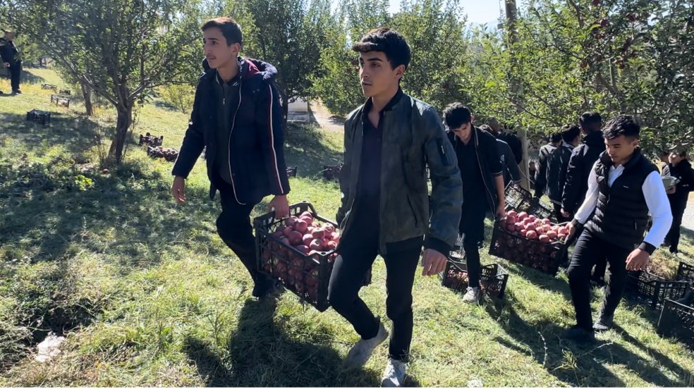 Yüksekova'da Muharrem Malazgirt Mesleki ve Teknik Anadolu Lisesi tarım sınıfı öğrencileri okulda gördükleri dersler sonrası bahçede elma hasadına başladılar.