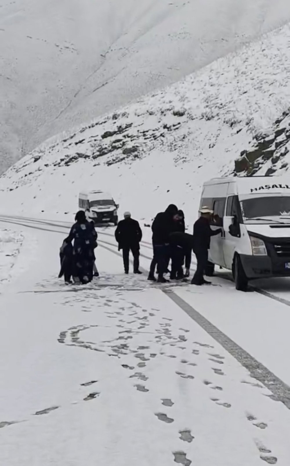 Sürücü ve yolcuların kendi çabalarıyla araçlara zincir taktığı, ardından kontrollü şekilde yollarına devam ettikleri öğrenildi.