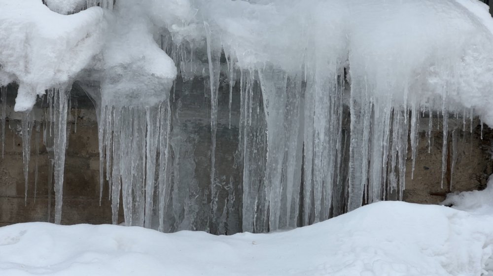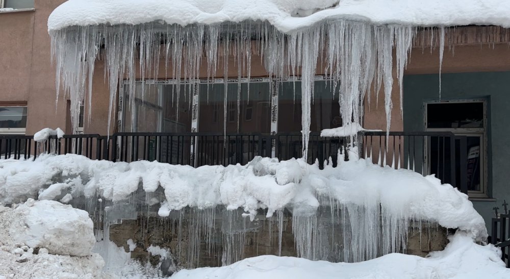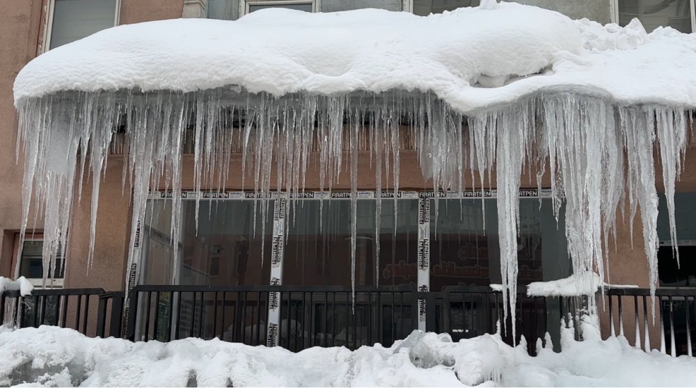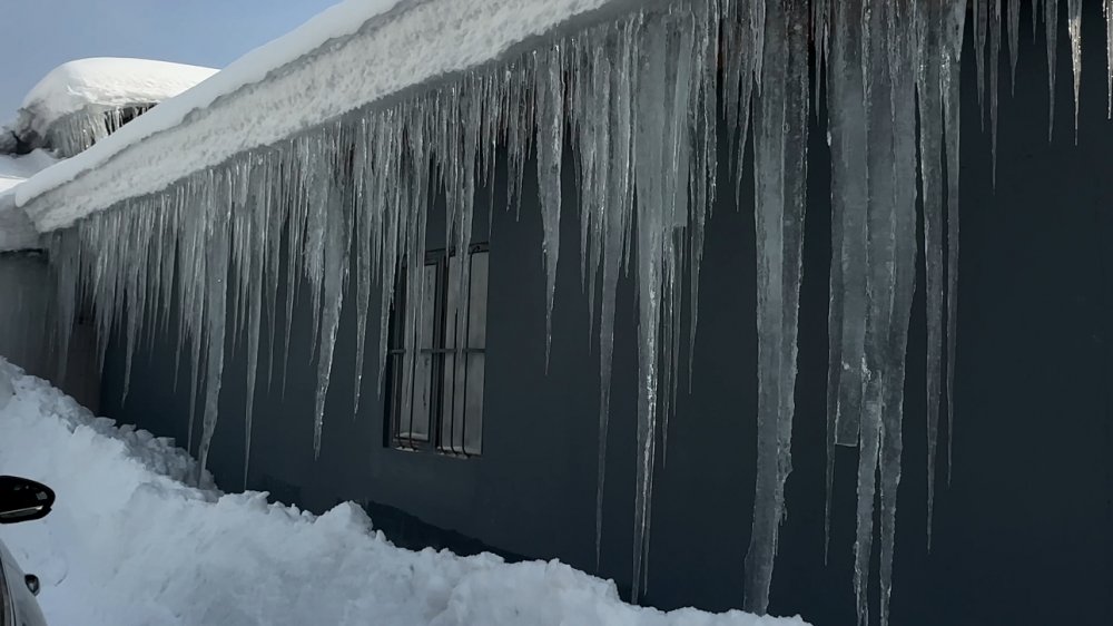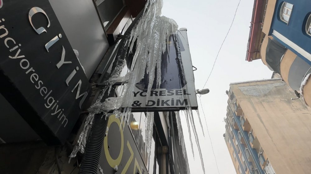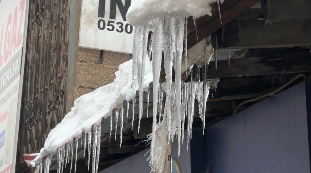 Sıcaklığın ani düşüşüyle birlikte bina çatılarında oluşan buz sarkıtlarının boyu yer yer 5 metreye ulaştı.