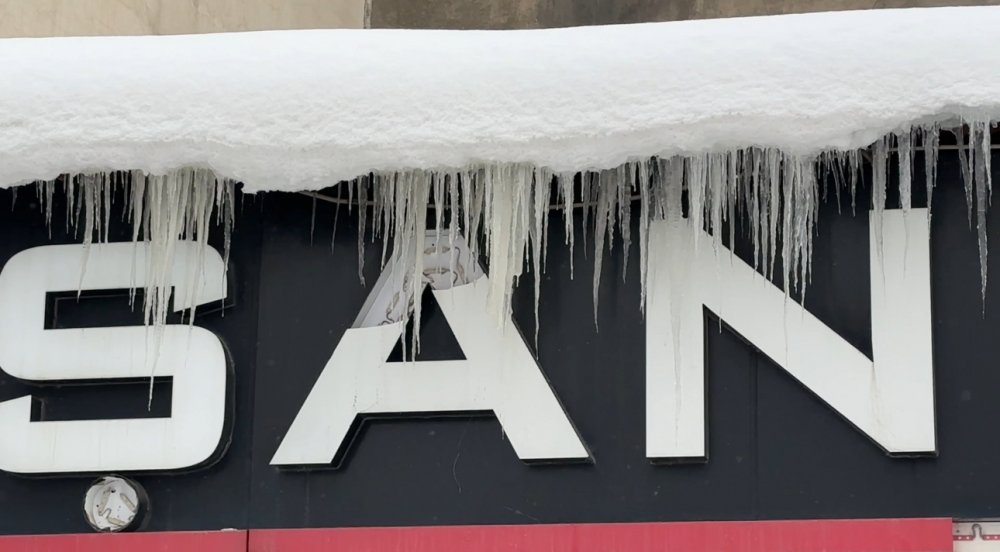 Hava sıcaklığının gece saatlerinde sıfırın altına düşmesiyle binaların çatılarında dev buz sarkıtları oluştu.