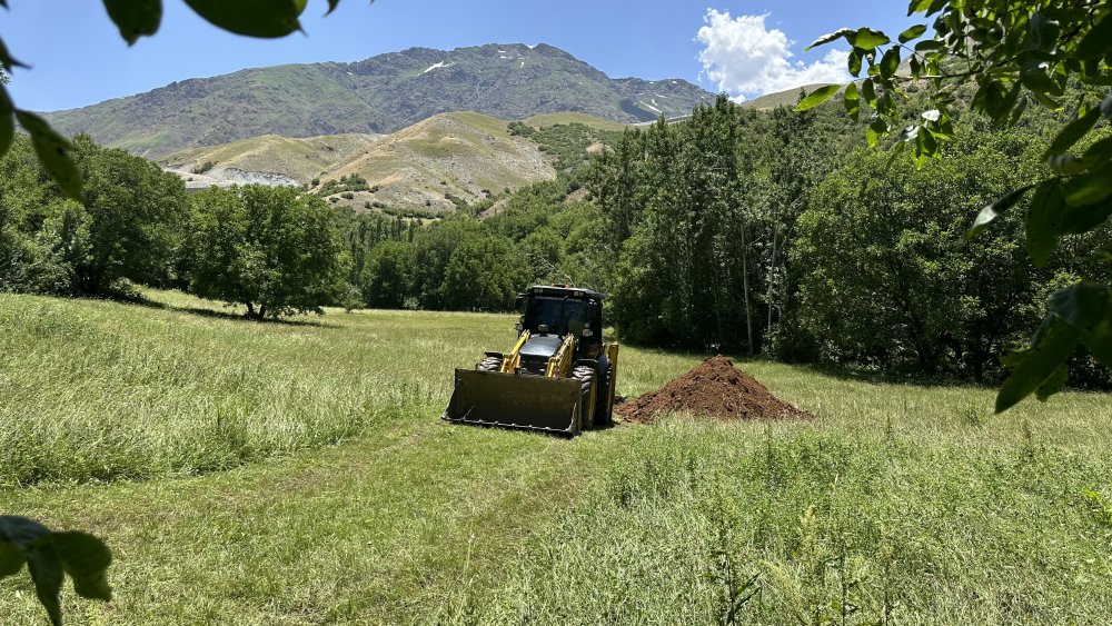 Çalışmalar kapsamında Şemdinli’ye bağlı Olgunlar ve Tekelli köylerinde kazı çalışması yürütülüyor.