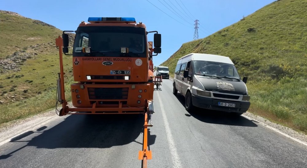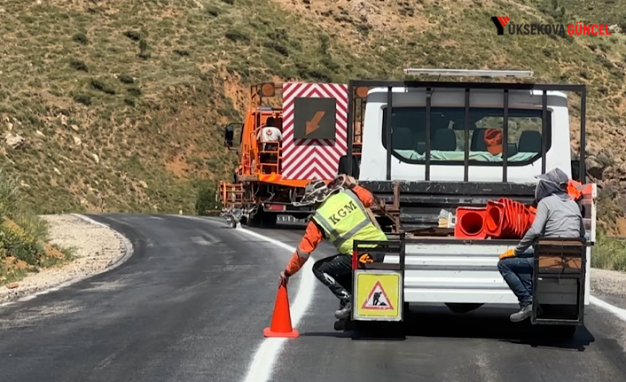 Yüksekova ile Şemdinli arasındaki önemli karayolunda trafik güvenliğini artırmak amacıyla şerit çizgileri yenileme çalışmaları başlatıldı.
