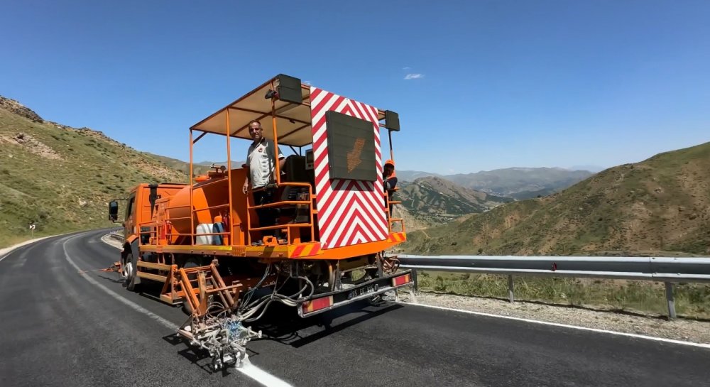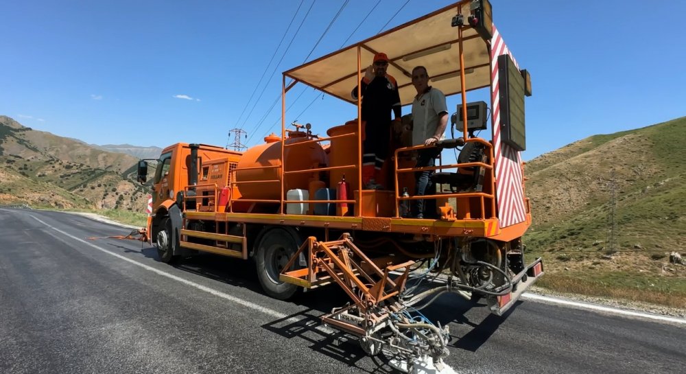 Sıcak asfalt zemin üzerinde beyaz şerit çizgilerini yenileyen ekipler, özellikle gece sürüşlerinde ve kötü hava koşullarında sürücülerin görüş mesafesini artırmayı hedefliyor. Bu sayede daha güvenli bir sürüş ortamı sağlanması amaçlanıyor.