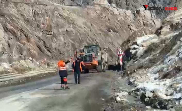 Yüksekova-Van kara yolu üzerindeki Yeni Köprü bölgesinde dağdan düşen kaya parçaları temizlendi.