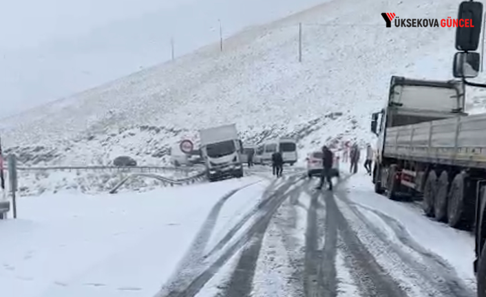 Yüksekova-Van kara yolunda etkili olan yoğun kar yağışından dolayı çok sayıda araç yolda mahsur kaldı.