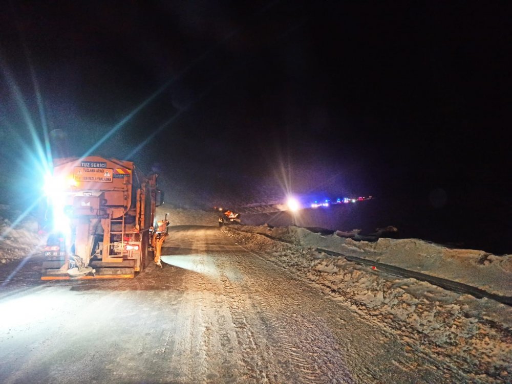 Yol çift yönlü olarak trafiğe kapanırken, bölgede bulunan bazı vatandaşların telefon ışıkları ile kazanının yaşandığı bölgeye giderek müdahalede bulunuyor.