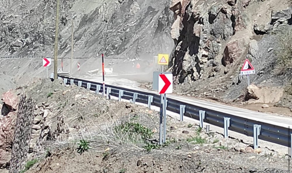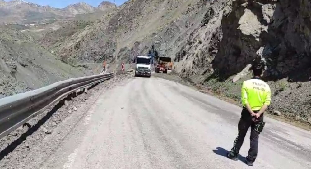 Yüksekova-Van karayolu üzerinde bulunan yeni köprü mevkiindeki dağdan aralıkla karayoluna inen dev kaya parçaları tehlike saçmaya devam ediyor.