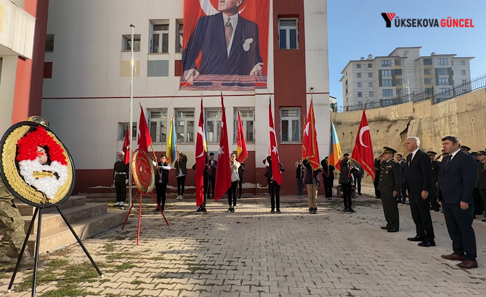 10 Kasım Atatürk’ü Anma Günü dolayısıyla Yüksekova Hükümet Konağı önünde düzenlenen tören, Yüksekova Kaymakamı Mustafa Akın’ın Atatürk heykeline çelenk sunmasıyla başladı.