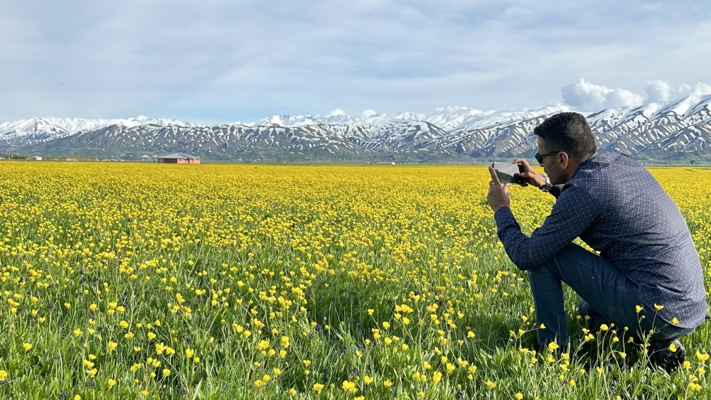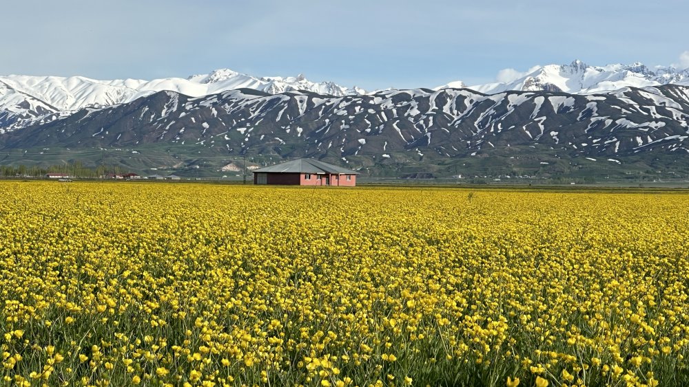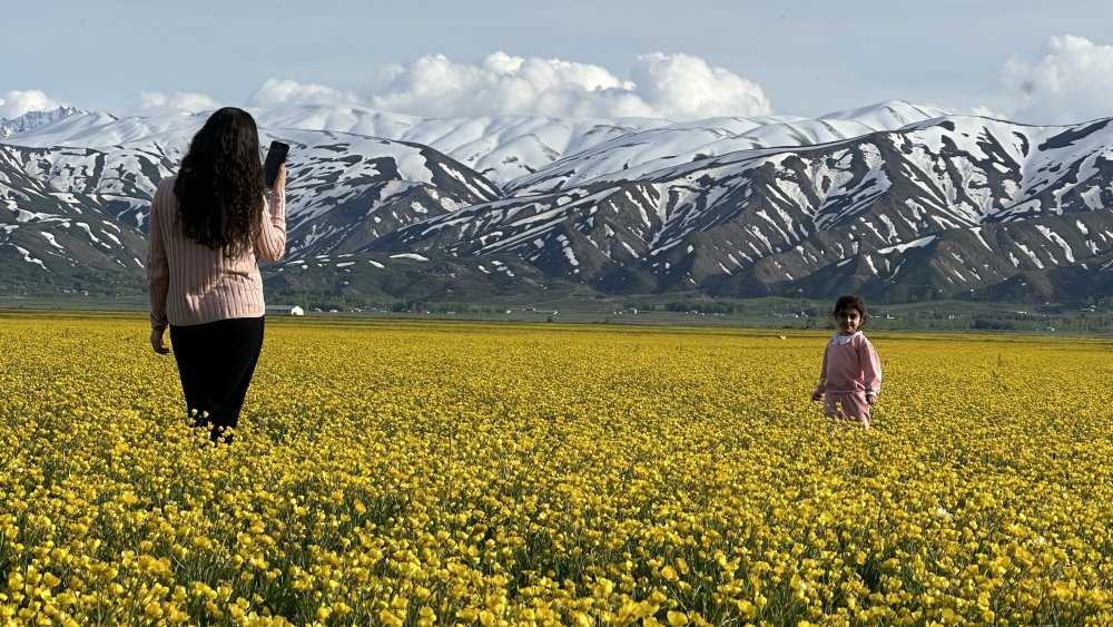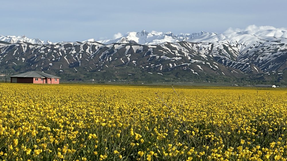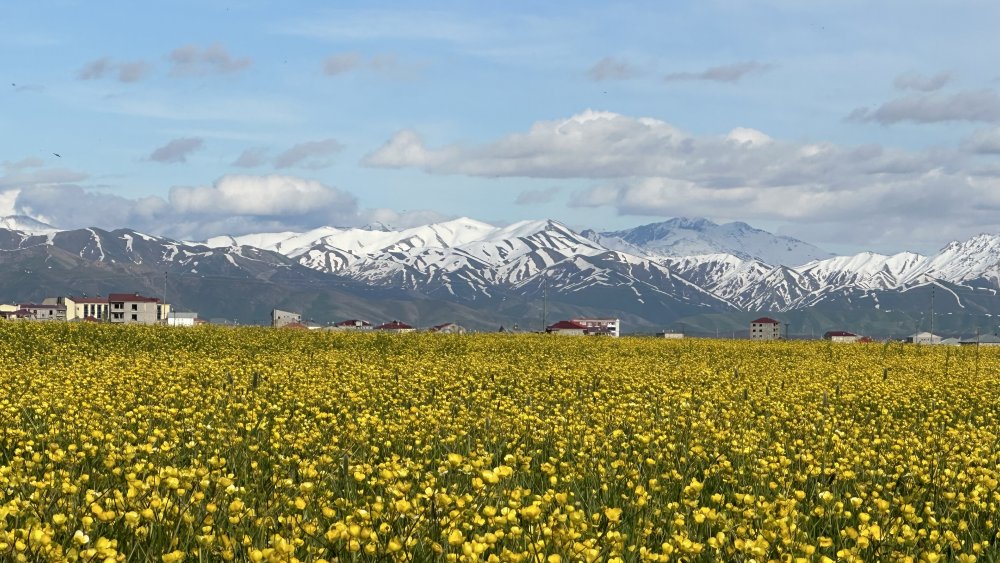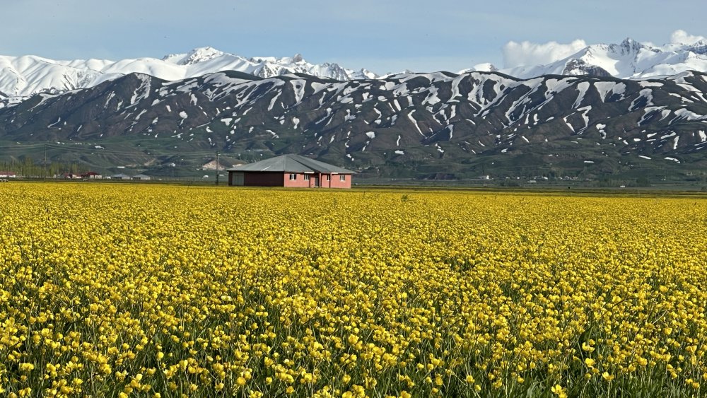 2 mevsimin yaşandığı Yüksekova ilçesinin Cilo dağın eteklerinde sarı çiçeklere bürünen ovası hayran bırakıyor.