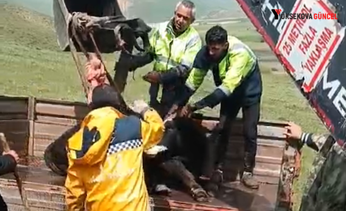 Bölgeye giden vatandaşlar tosunu kurtarmakta zorlanınca, Hakkari İl Özel İdaresi Genel Sekreterliği ve Yüksekova İlçe Özel İdare Müdürlüğü Şantiye Şefliği ekiplerine haber verdiler.