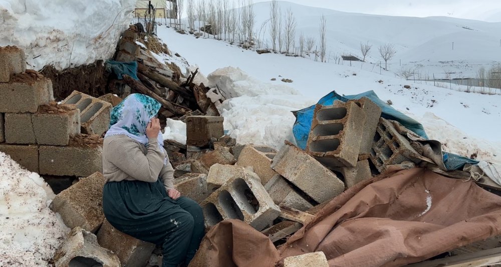 Sabah saatlerinde büyük bir gürültüyle çöken ahır, Zine Teyze’nin dünyasını başına yıktı. Şans eseri koyunların içeride olmadığı o anlarda, dışarı fırlayan yaşlı kadın karşılaştığı manzara karşısında dizlerinin üzerine çöktü. Yıkılan ahırının harabesi başında gözyaşları içinde bekleyen Zine Teyze, çaresizliğini feryat ederek dile getirdi.