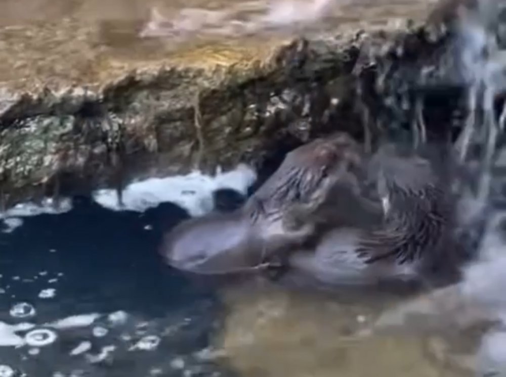 Yeşildere Mahallesi mevkiinde dere içinde oynayan 3 su samuru yavrusu cep telefonu kamerasıyla görüntülendi.