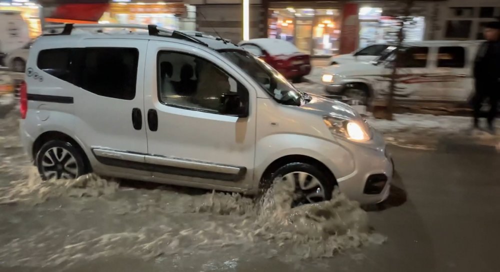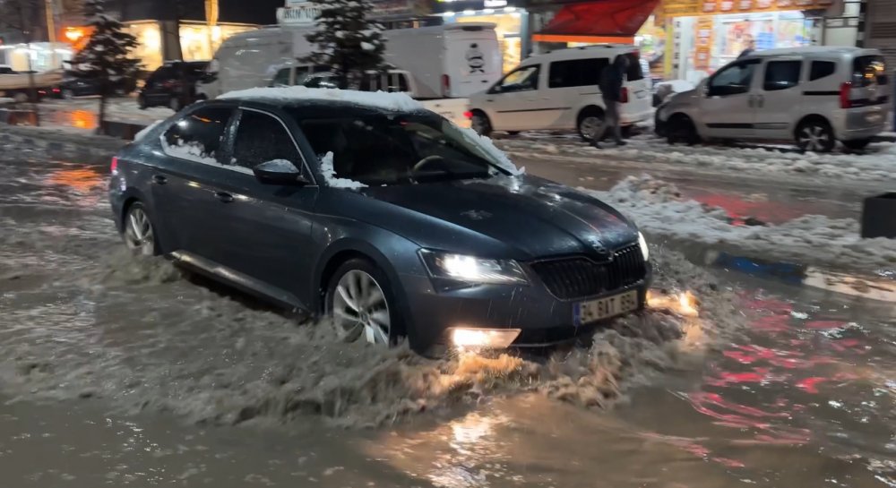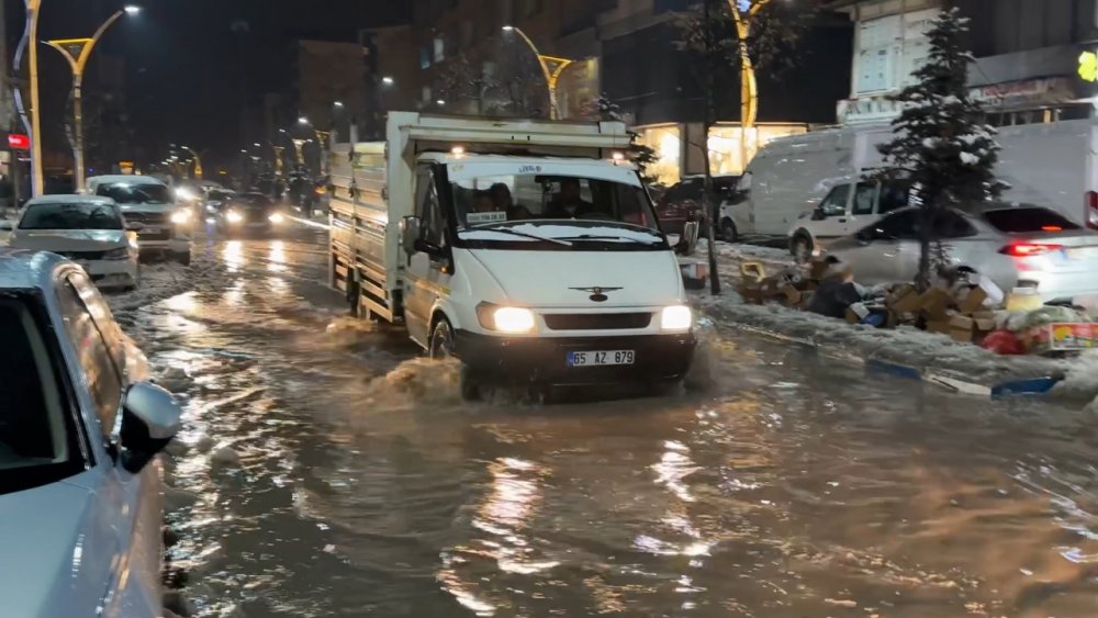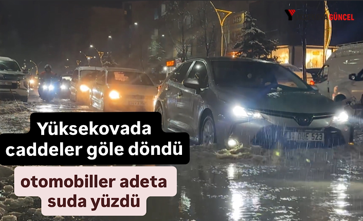 Yüksekova ilçesinde etkili olan yoğun sağanak ve karla karışık yağmur, ulaşımda aksamalara ve su baskınlarına neden oldu. İlçenin en işlek caddesini göle çevirdi, otomobiller içinde adeta yüzdü.