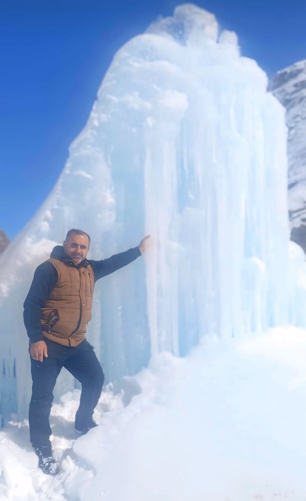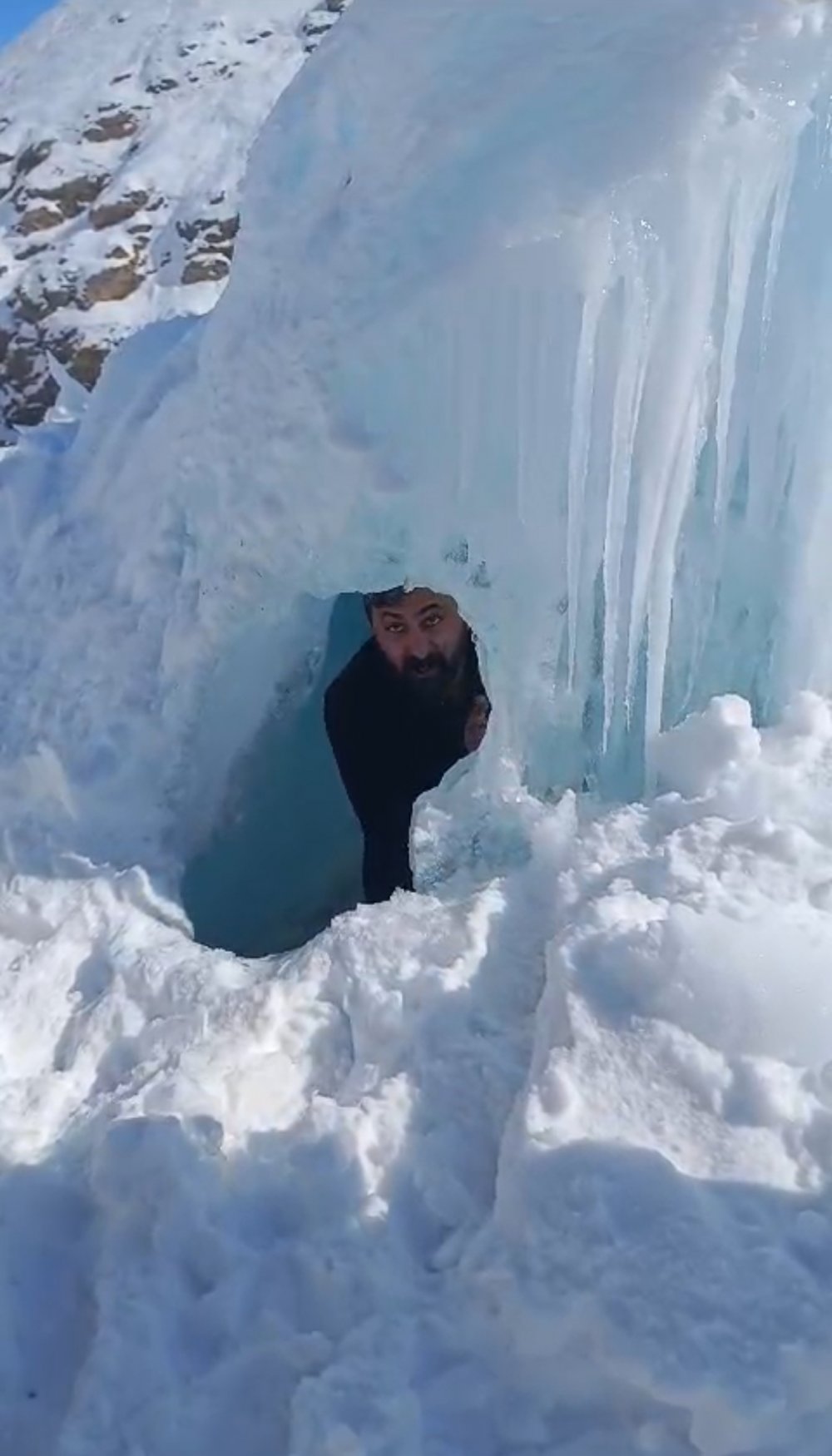 Yüksekova ilçesi'nde soğuk havalar sonrası oluşan devasa buz kütlesi şaşırtırken, vatandaşlar buz kütlesini doyasıya fotoğrafladı. Oluşan buz kütlesi Norveç’te bulunan buz odalarını da aratmadı.