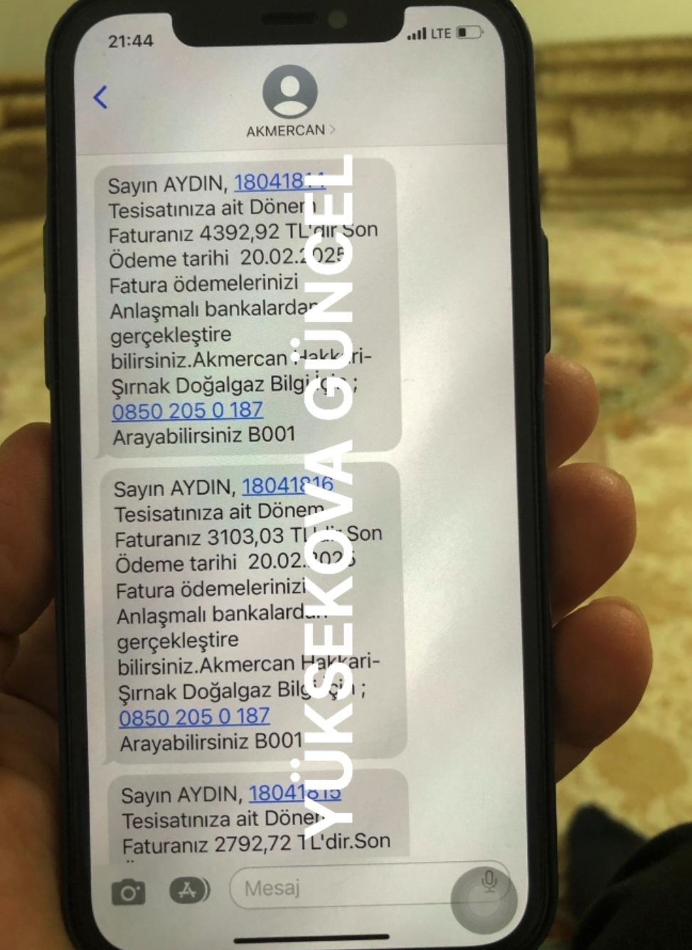 İlçede vatandaşlar tarafından merak edilen doğalgazın ilk faturalarını ise Aydın ailesi, Yüksekova Güncel ile paylaştı.