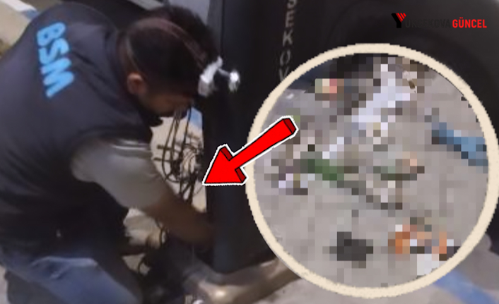 İlçenin can damarı sayılan Cengiz Topel Caddesi üzerinde aydınlatma direklerini onaran ekipler, şoke eden bir manzara ile karşılaştı.
